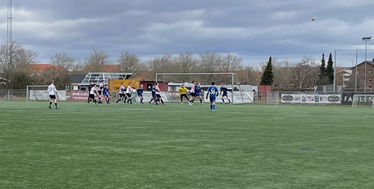 Efter 30 minutters spil får Bredballe tilkæmpet sig et hjørnespark, bolden sendes ind over til en helt fri modstander, der ubesværet kan heade den i målet til udligning 1-1.