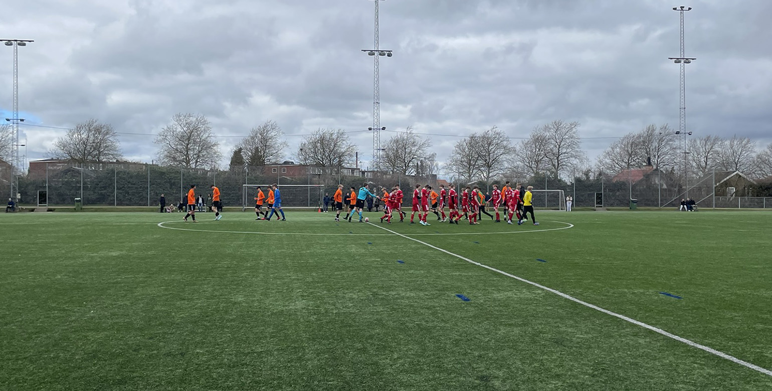Men i det 16. minut var det OKS, der fik etableret en kontra, og fik vist hvor hurtigt og effektiv det kan gøres. Bolden afleveres til OKS’ Jonas Hørlyk, der med en god tæmning spiller op på den altid hårdtarbejdende angriber, Adam Dresbøll, som fikst lægger af til Hørlyk igen, der finder en medstormende Matias Rasmussen, og med en hurtig vending og et lille touch lægger den til rette for OKS’ Aslan Bulkaz, der uden tøven sparker den i det korte målhjørne. Et fremragende og velspillet angriib – 4 berøringer og 1-0 til OKS.