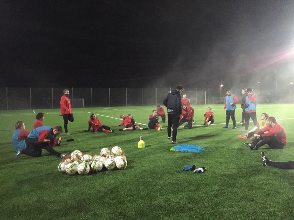 På grund af det tidlige mørke her i oktober måned er Albaniseriens træning nu henlagt til vores nye kunstgræsbane. Billedet er taget ved tirsdagens træning.