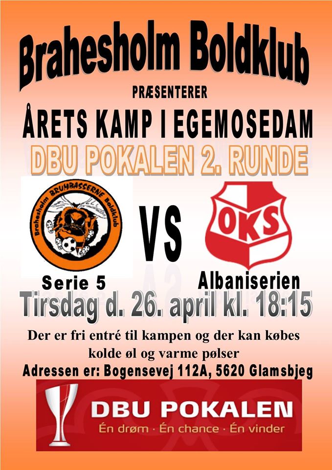 Vi skal på besøg hos Brahesholm, der til hverdag spiller i Serie 5, hvor de efter 4 kampe er placeret på en 10. plads med 3 point og en målscore på 8 – 19. Brahesholm har kvalificeret sig via en sejr over Ejby IK