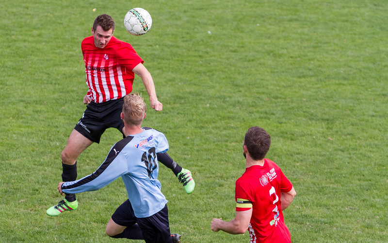 Christian Mikkelsen i duel i sidste weekends opgør mod Morud. Mads Eskesen er parat til at gribe ind. Foto: Kurt Bebe