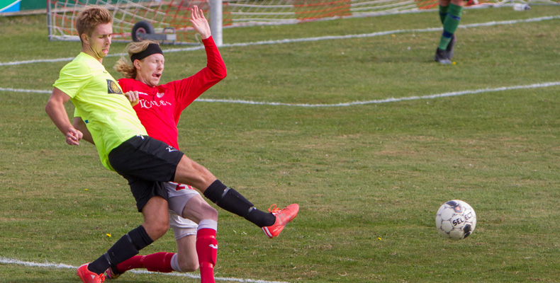 Billede 3: Mats Andersen (t.v) spillede en fremragende 1. halvleg for OKS. Lasse Plato (t.h) scorede kampens første mål.