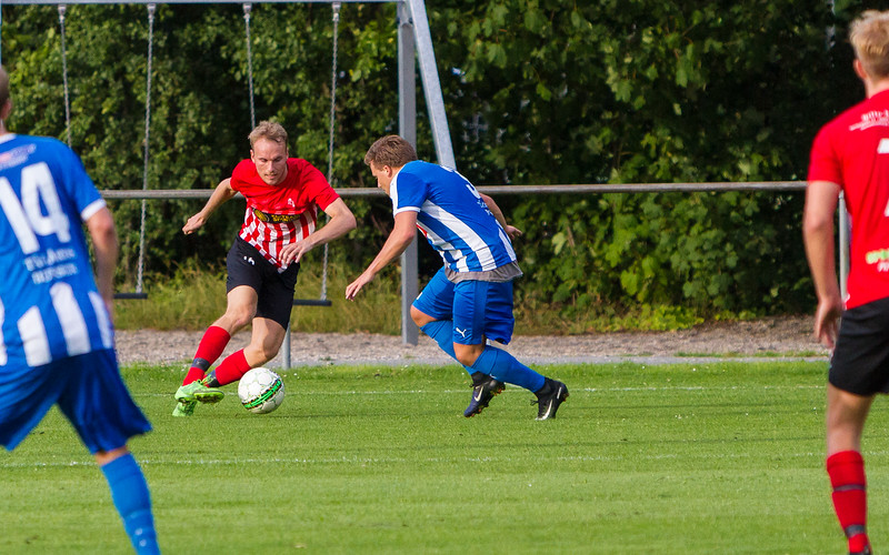 Begge mandskaber forsøgte sig med kombinations spil langs græsset, hvilket til dels lykkedes. OKS havde dog svært ved at skabe chancer mod et velspillende Otterup hold. Værterne bolterede sig til gengæld i et gavmildt OKS forsvar, der manglede den sædvanlig skarphed og disciplin.
