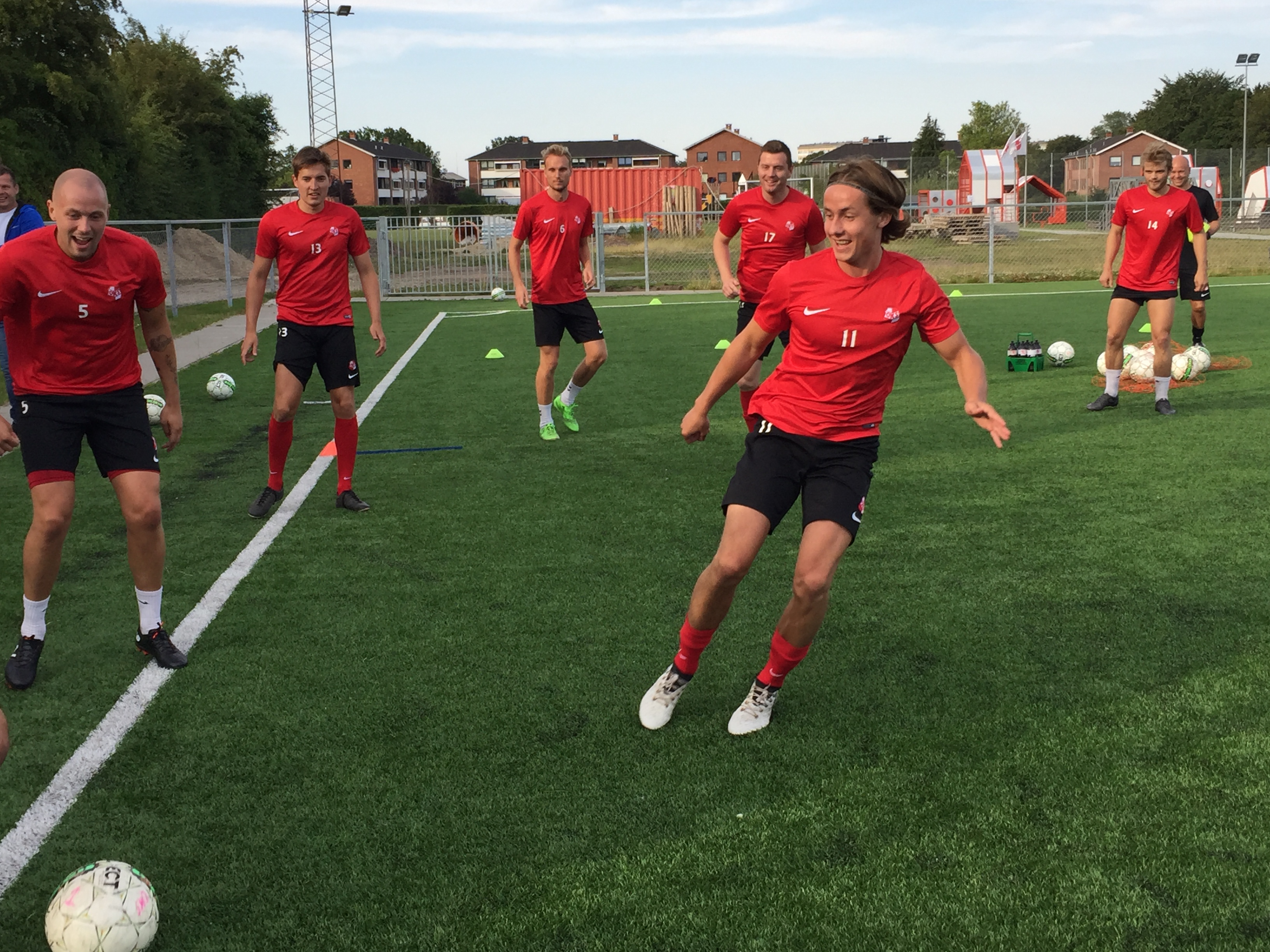 OKS spillerne havde kun 2 trænings pas i benene inden mødet med TPI. Billedet er fra onsdagens træning