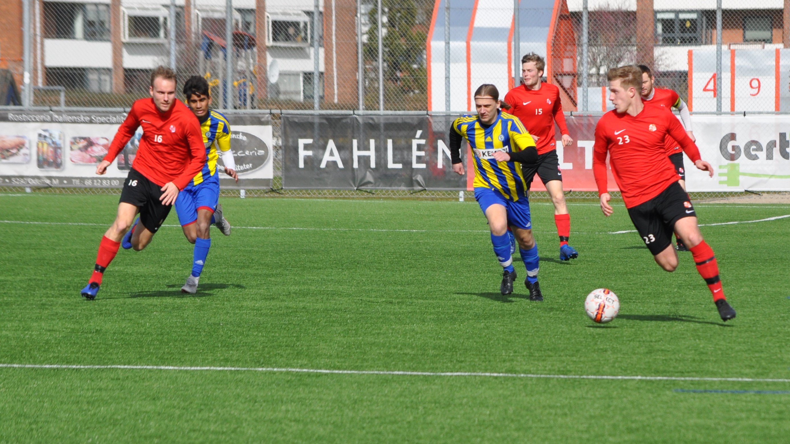 Da der var 5 minutter tilbage inden pausen, eksploderede kampen med 3 scoringer. Først var det Mathias Wiingaard der udlignede, men blot 2 minutter efter bragte Mads Mikkelsen OKS i front igen. Der efter gik der kun yderligere 2 minutter inden Jakob Mønster var hurtig i opfattelsen og rundede forsvaret med største lethed inden han scorede sikkert til 3 – 1.