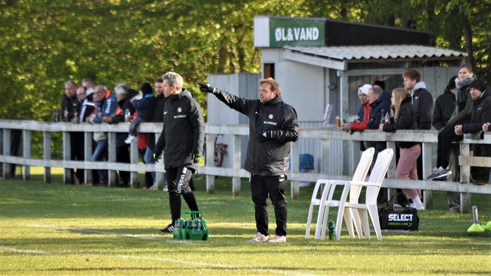 Rene Lindharth (t.h) sammen med assistenttræner Allan Jensen under pokalkampen mod Fjordager. Foto af Bo Holst Sørensen