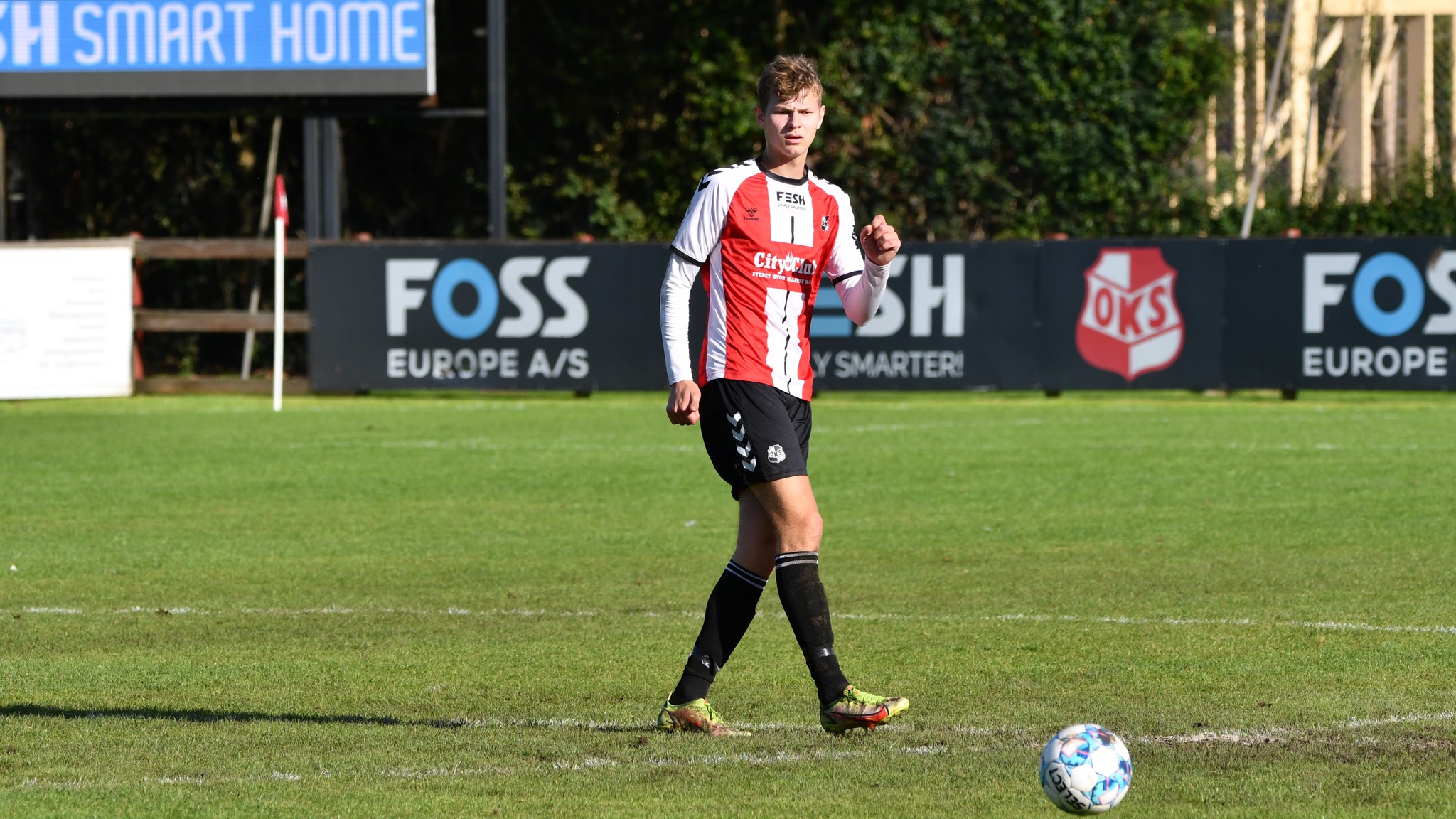 Unge Emil Qvortrup startede inde i midterforsvaret og var kraftigt involveret i vores sejrsmål. Senere måtte den dygtige spiller udgå med en skade. Foto af Bo H Sørensen