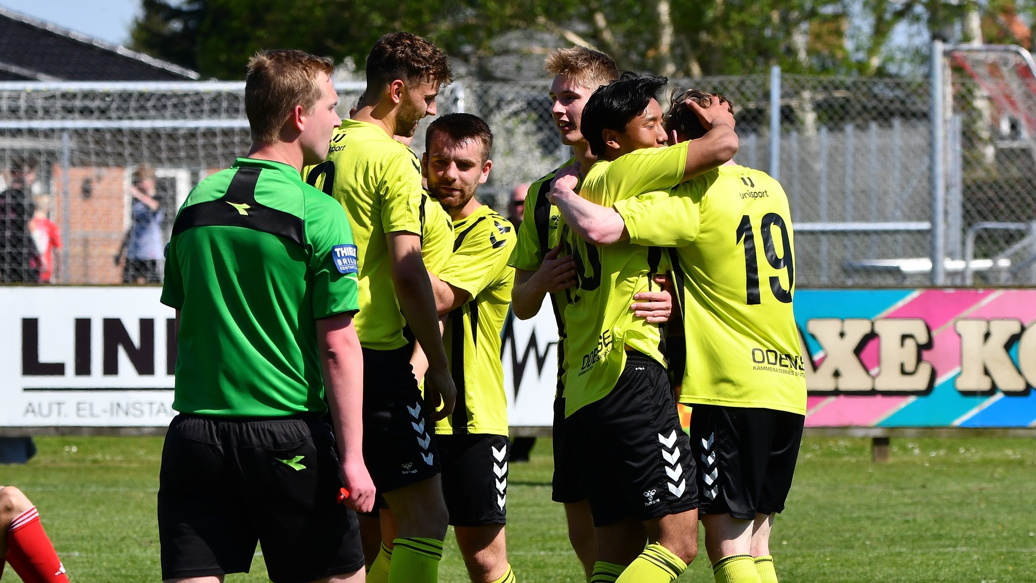 OKS jubel efter et af målene i sidste weekends sejr over TPI. Foto af Bo H Sørensen