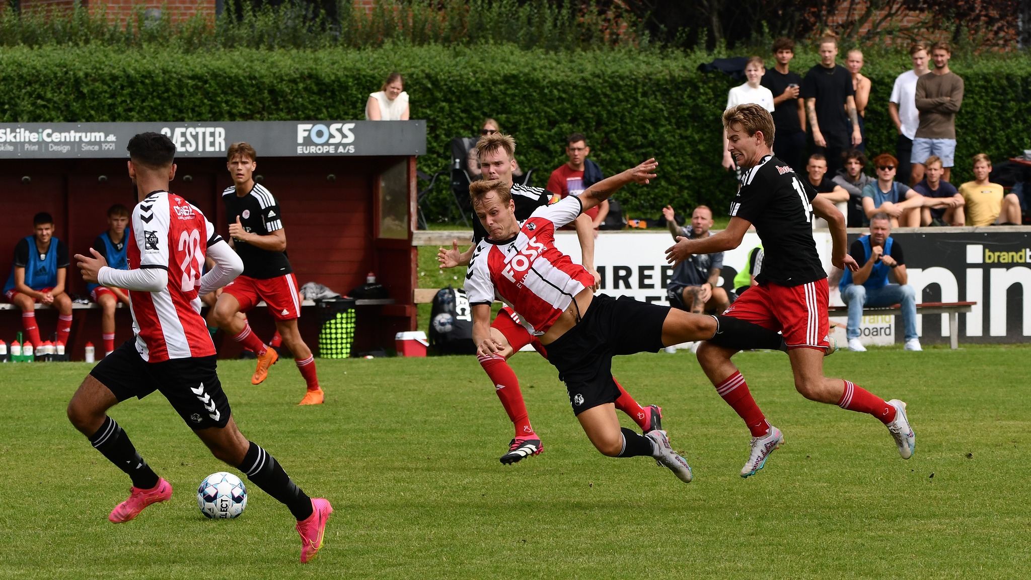 Få minutter senere kunne gæsterne have udbygget føringen, da et indlæg fra højre fandt frem til Rasmus Schmidt, der dog missede den store mulighed og headede forbi målet.