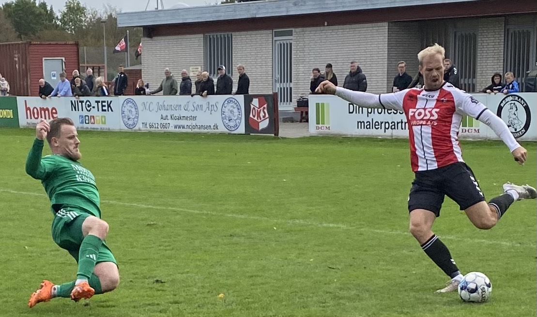 Andreas Rynkeby scorede for anden kamp i streg. Her er angriberen i aktion i lørdagens kamp. Foto af Henrik Kleiner