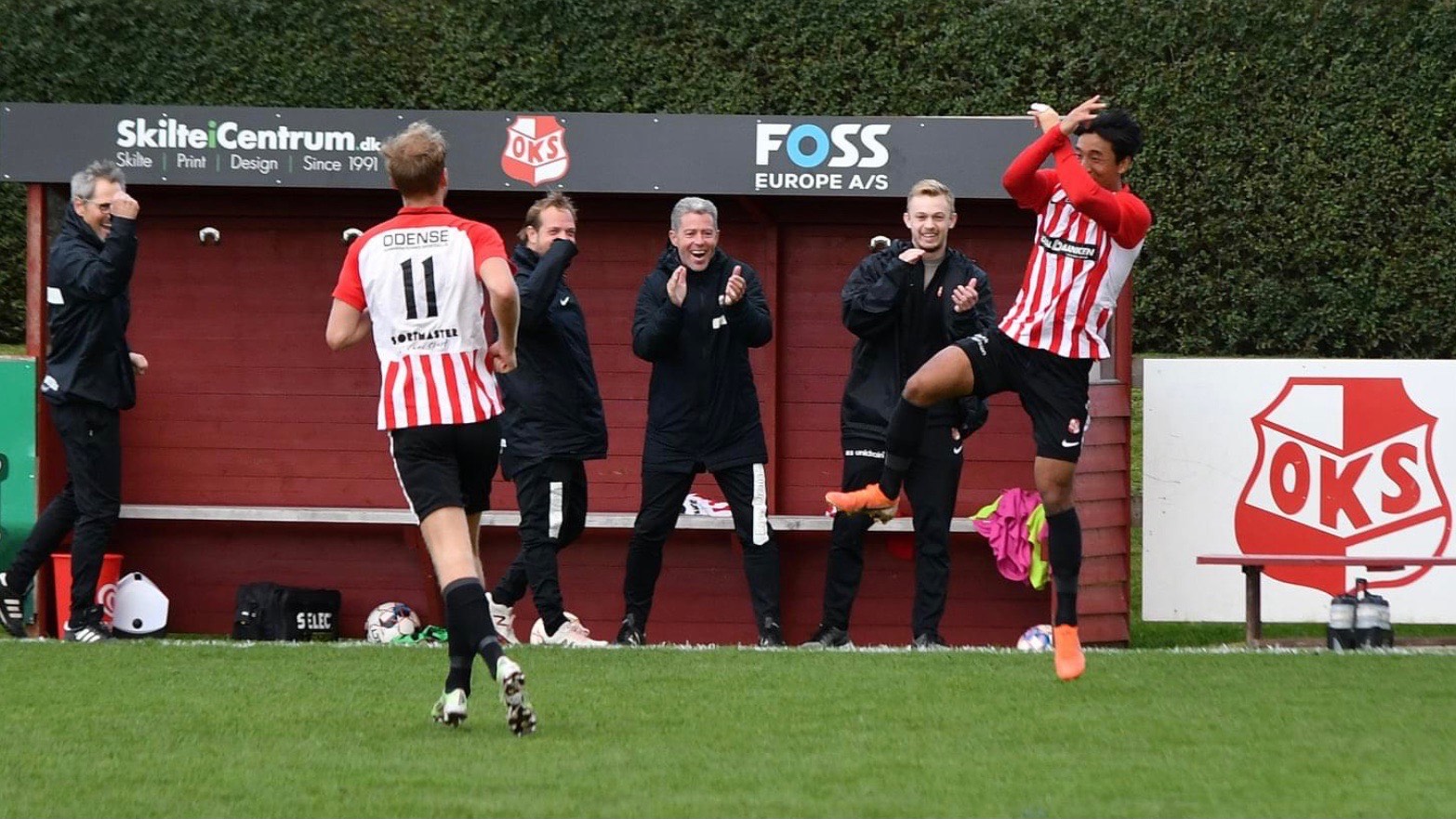 OKS kontrollerede kampen og skabte løbende gode muligheder for at øge føringen, men vi skulle hen til det 81. minut, hvor Lasse Grønholt også ville lege med og efter en hurtig vending i feltet sparkede offensivspilleren bolden op i målhjørnet. 4 – 1.