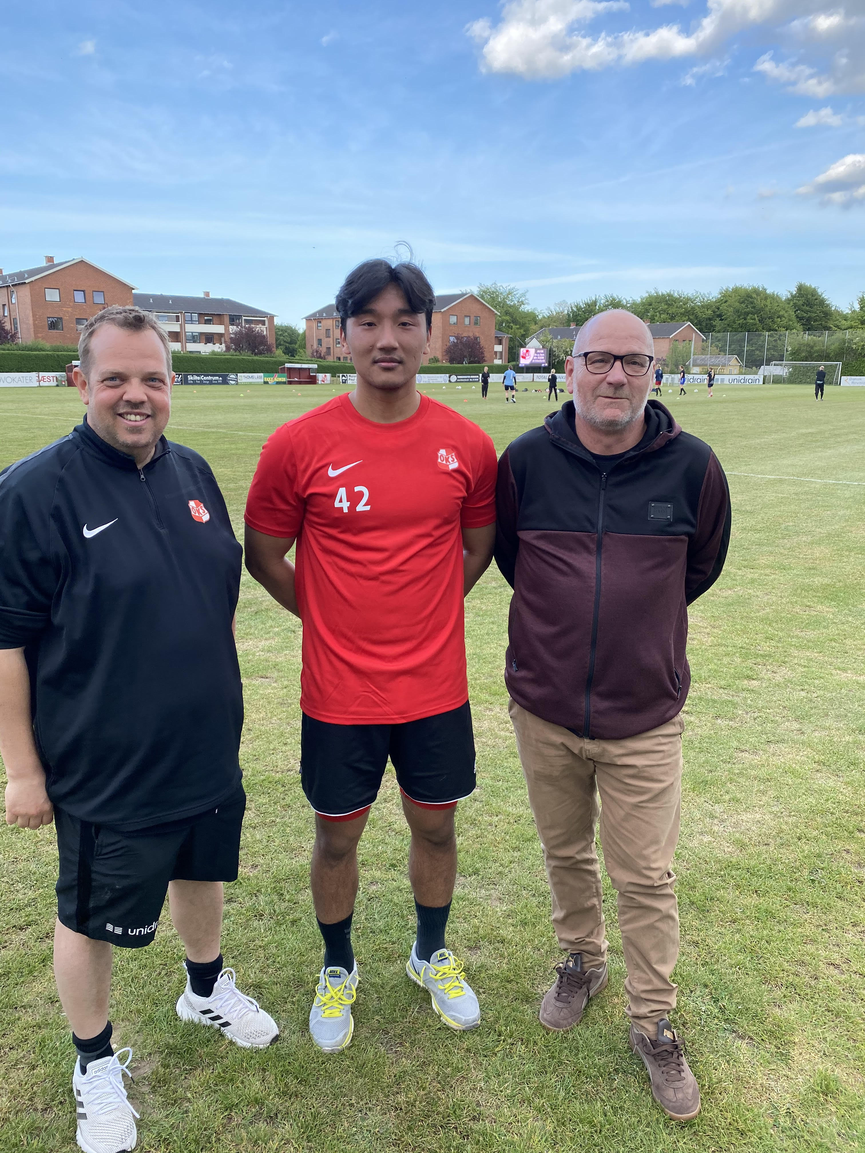 Tong er her flankeret af træner Rene Lindharth og sportslig ansvarlig Mikael Skovgaards
