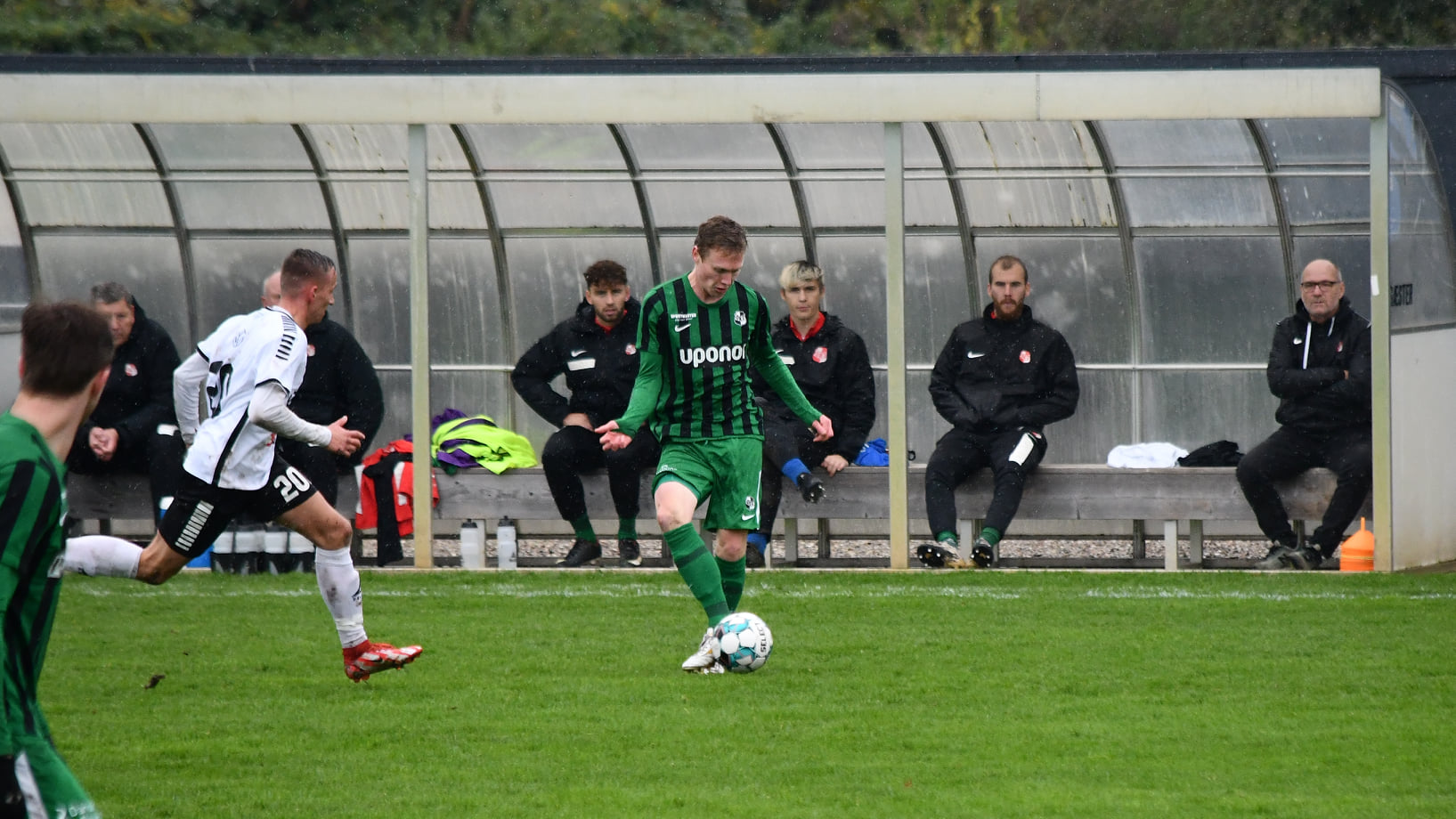 Da kampens dommer fløjtede op, havde et massivt regnvejr præget hele formiddagen, men græsbanen på SFBs anlæg stod alligevel relativ flot.