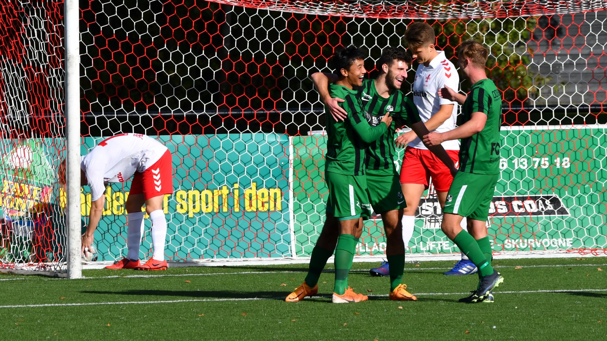 Rinor Cocaj har netop udlignet og lykønskes af Tong og Ronni Nordnæs. Foto af Bo H Sørensen