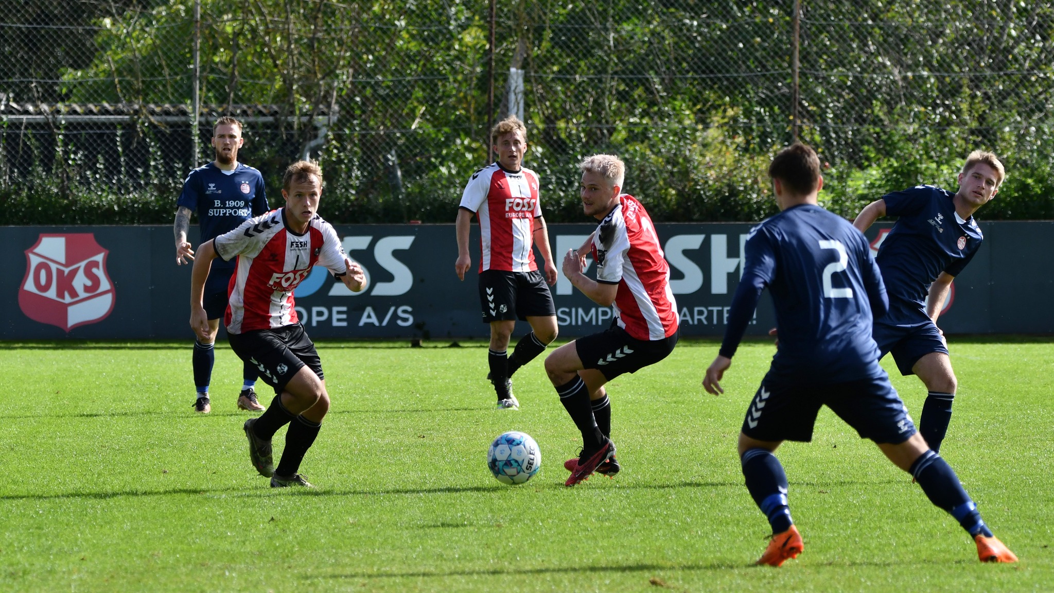 OKS begyndte opgøret bedst og havde inden for det første kvarter 3 store chancer for føring. Men B1909 arbejdede sig godt ind i kampen og vandt fortjent en smal 1 - 0 sejr.
