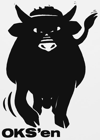Fyrrig, fnysende og klar til kamp. OKS'en, klubbens ikoniske vartegn, så dagens lys første gang på forsiden af medlemsbladet OKS-Nyt, nr. 2/1976. I bladet optræder kunstneren anonymt - vi kan afsløre, at daværende målmand i OKS, Bruno Vestergaard, er manden bag mesterværket.