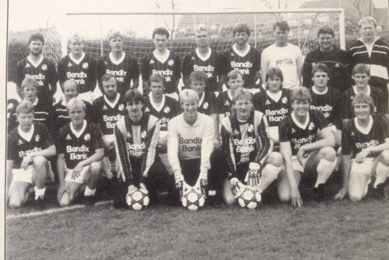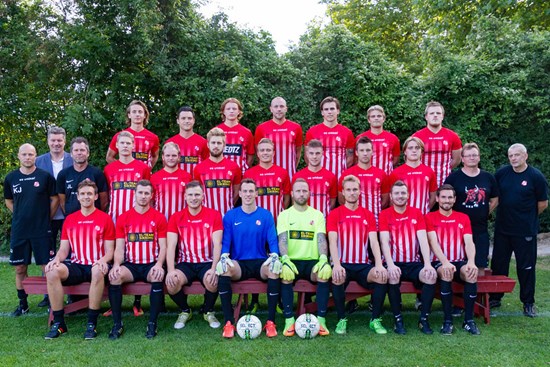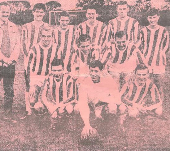 Holdet bag klubbens første oprykning til Fynsserien nogensinde og så er denne dårlige kopi alt hvad vi indtil nu har fundet. Sorry guys! To senere formænd er med: I midten bagerst: Johan Schmeltz. Forrest tv: Carl-Erik Larsen.