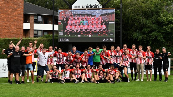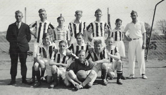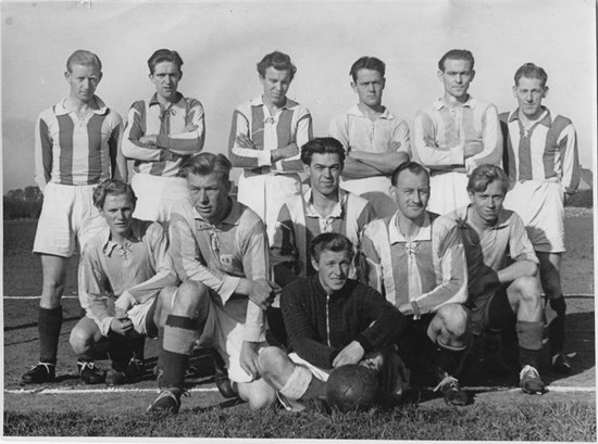 Oprykkerne fra 1947: Bagerst fra venstre: Erling Kristiansen, Jørgen Hansen, Kai Aage Sørensen, Holger Schrøder, Eli Negendahl, Chr.Knudsen. Forrest fra venstre: Henning Hjort, Knud Hansen, Leif Hansen, Egil Brumvig, Carl Aage Andersen. Målmand Johs.Johansen.