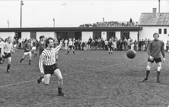 Ernst Holst scorer i vanlig elegant stil mod Veflinge i 1975. OKS vandt 4-0 og rykkede dén sæson op i Fynsserien