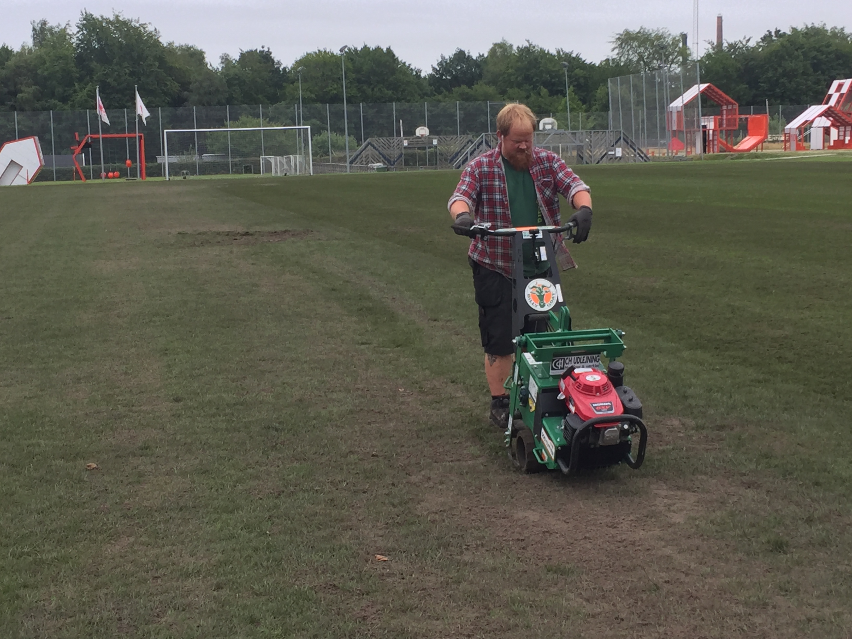 Kommunens folk og Lars Gjersing arbejder på banerne i sommerferien.