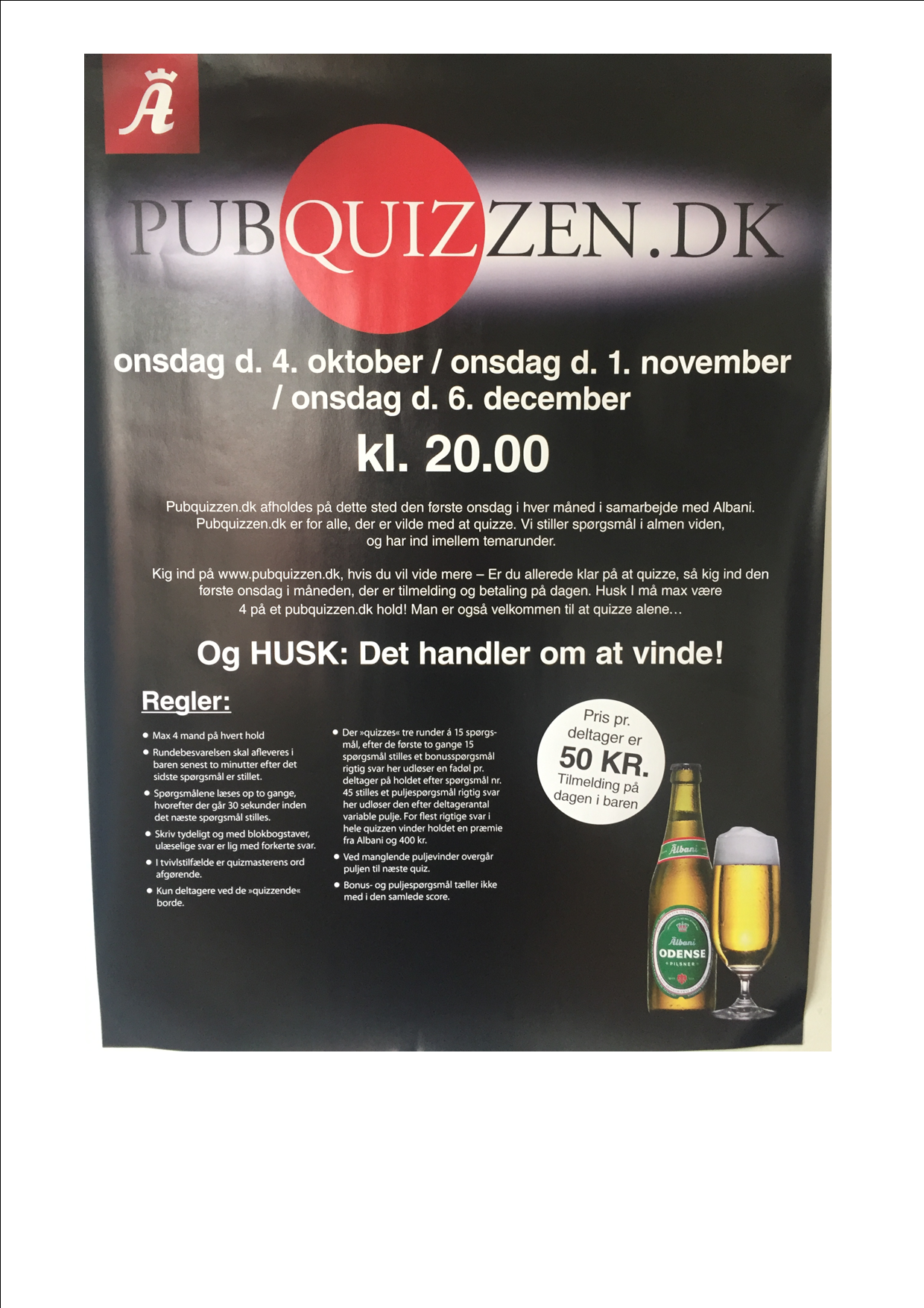 Husk at det er nu på onsdag, den 6. december, at der afholdes pub quiz i Cafe OKSen.