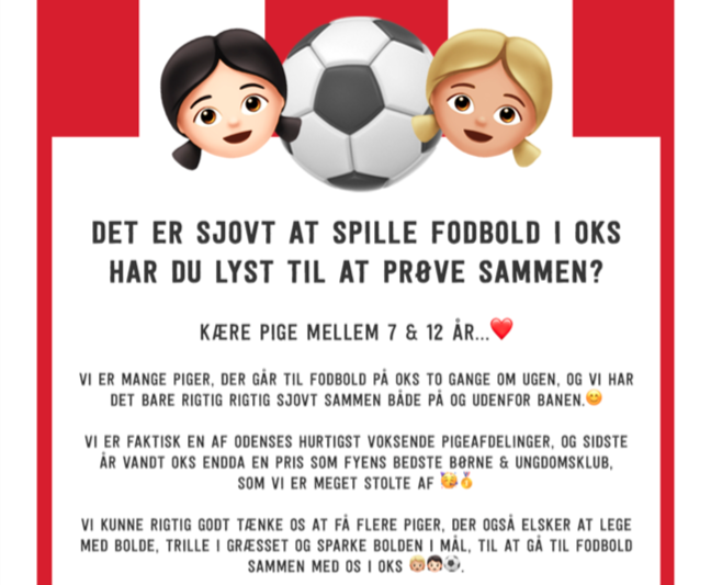 Vi er mange piger, der går til fodbold på OKS to gange om ugen, og vi har det bare rigtig sjovt sammen, både på og uden for banen.