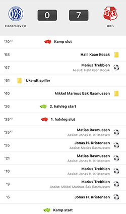 Det blev således også kun til en enkelt scoring i anden halvleg, sat ind af OKS’s Marius Trebbien, der fik fuldendt dagen med et hatrick og scoring til kampens resultat, 7-0.