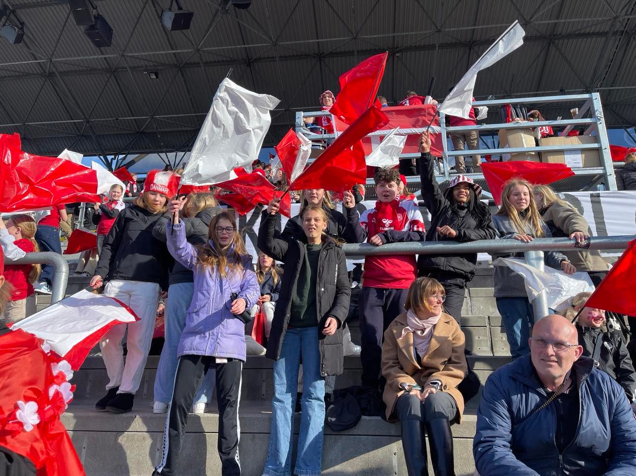 Placeret på ståtribunen lige under stortrommen og kvindelandsholdets fanklub fik pigerne underholdning for alle pengene og lærte adskillige af de slagsange, der bar holdet frem til sejren.