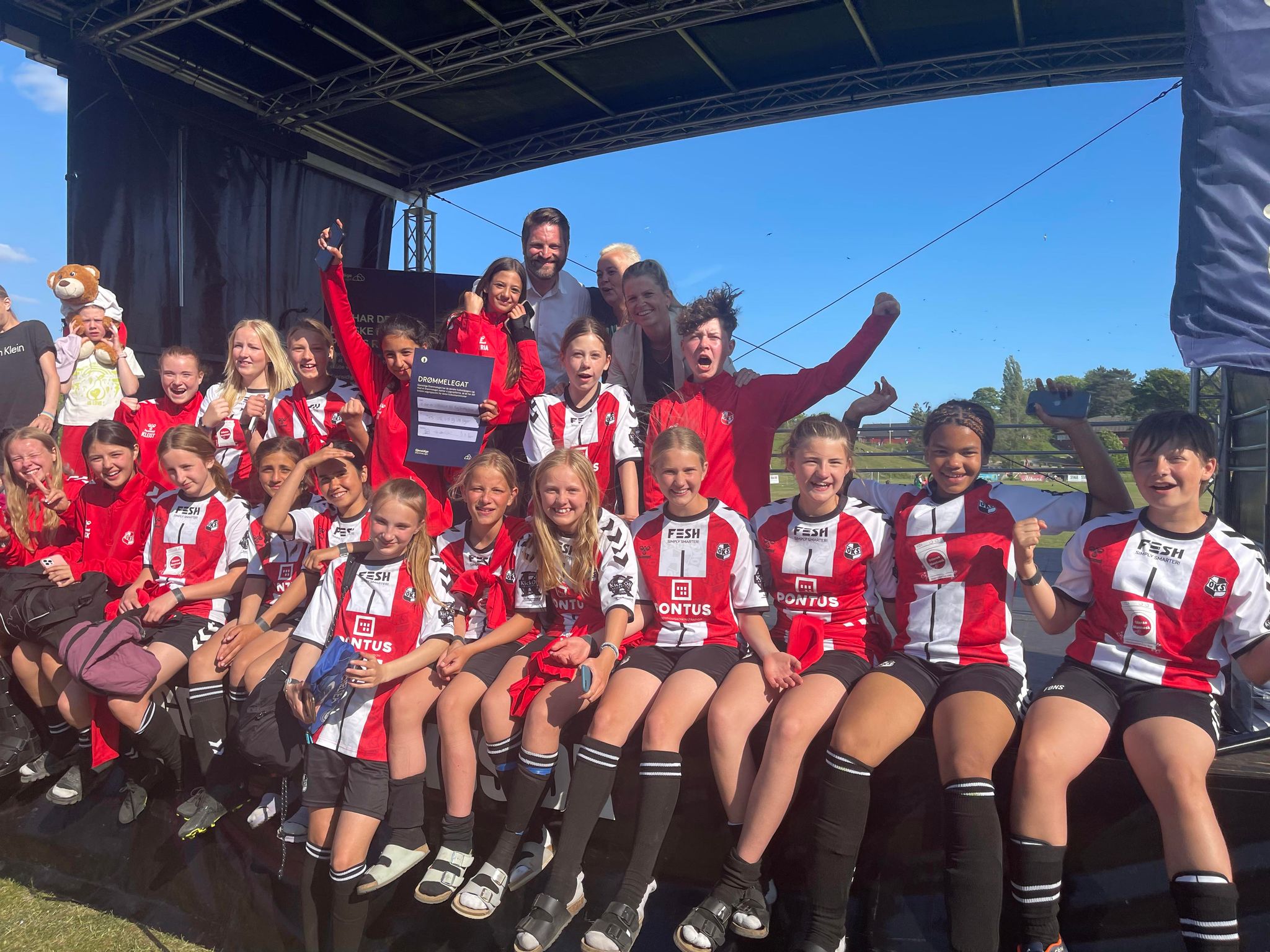 32 fodboldpiger fra OKS drog første weekend i juni til Madsby Pige Cup i Fredericia for at spille et fedt fodboldstævne. Ud over at komme hjem med masser af fodboldkampe i benene og solbrændte kinder havde pigerne også en check på 10.000 kroner med hjem i bagagen.