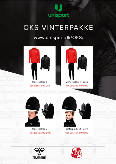 Pakkerne købes direkte på Unisport. Husk altid at benyt koden OKS10 til glæde for dig som medlem - og klubben.