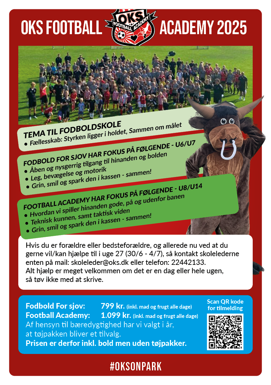 Så er tilmeldingen til årets fodboldskole åbent. Skynd jer og book plads til en sjov og lærerig uge med masse af bold og fællesskab.