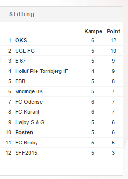 Vi ligger stadig nummer 1 med 12 point, det er der ikke nogle som kan tage fra os, men de andre hold kommer tættere på, og flere af holdene som gerne vil kæmpe med om toppen.